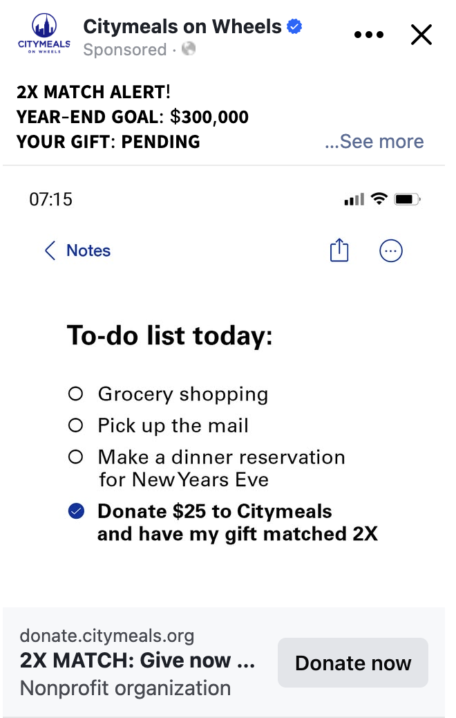 From email inboxes to text notifications to the scroll on social media, year-end was packed with competition from organizations making powerful fundraising appeals. To inspire folks to give to your mission and your organization, nonprofits built their creative strategies around the urgency of the moment we’re in. Programs that used creative strategies to tell a donor exactly what their gift can provide, explicitly ask for a moment of their audience’s time, and take supporters by surprise drove the highest results this year-end.