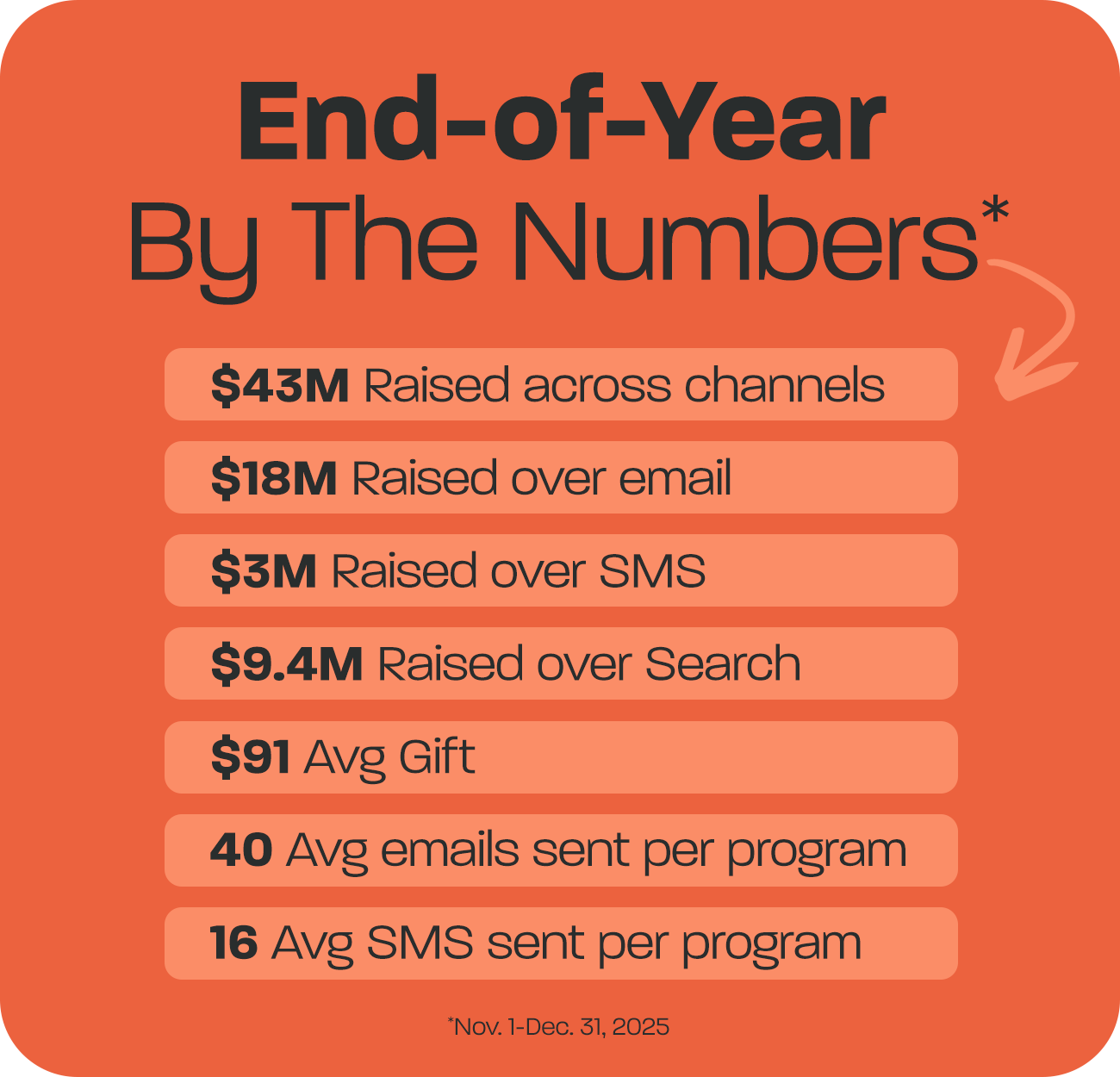 Nonprofits that used the summer and fall months to grow and prepare their lists ahead of year-end saw the strategy pay back at Giving Tuesday and end of year. This was especially the case in 2025, when a challenging economic landscape made it all the more essential for nonprofits to ensure they are turning to their largest, best audience in key moments.