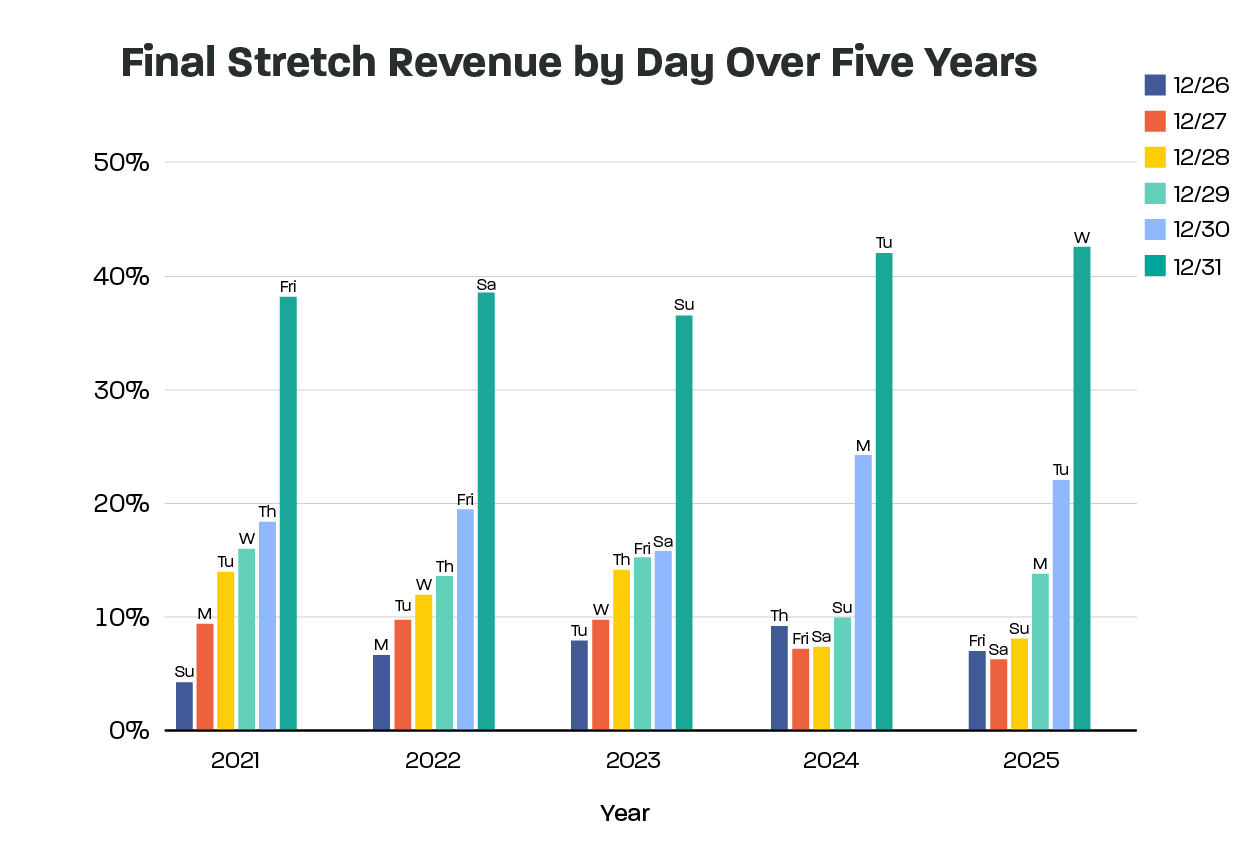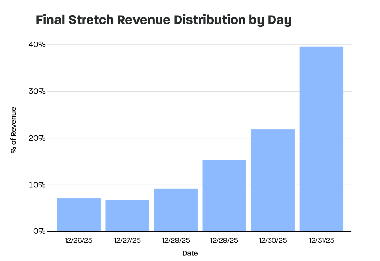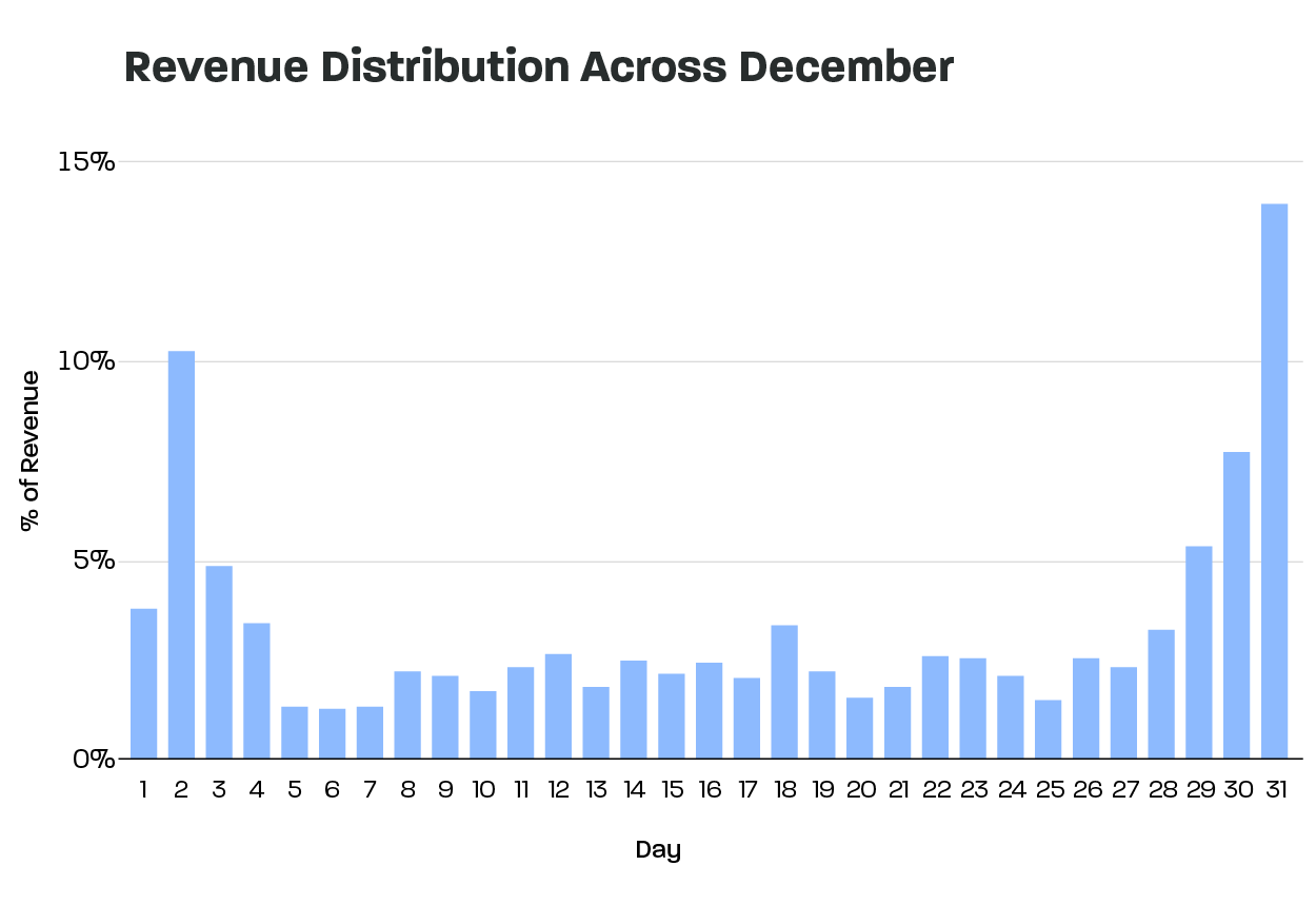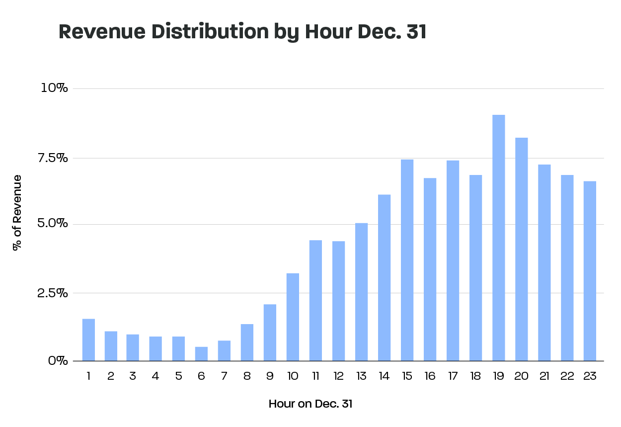 Here’s how revenue distribution broke down at end of year – across December, through the final stretch, and throughout Dec. 31 by hour: